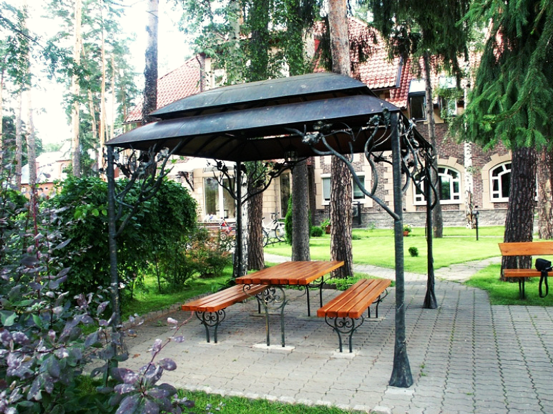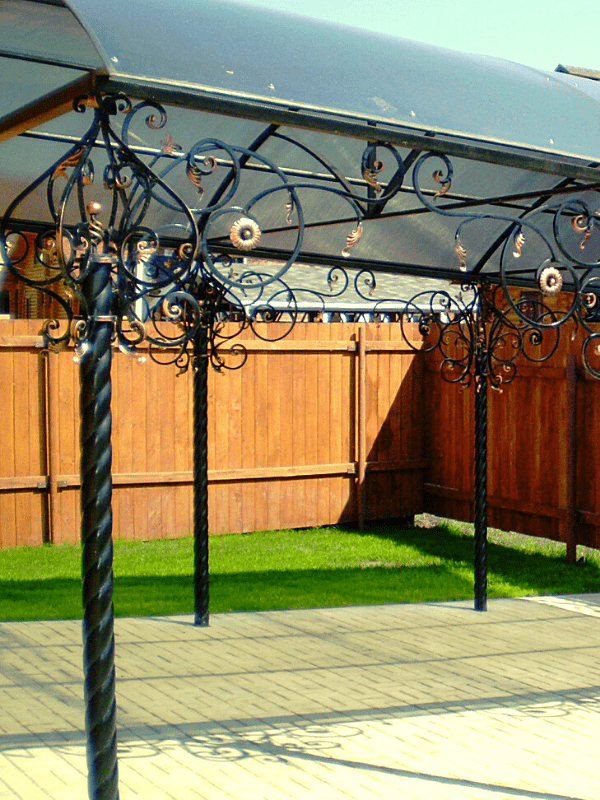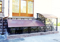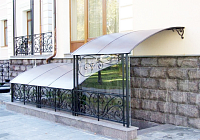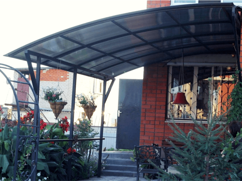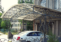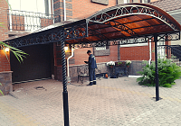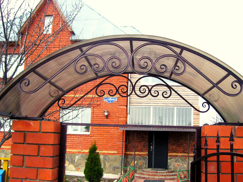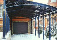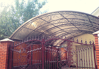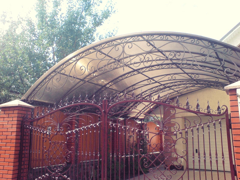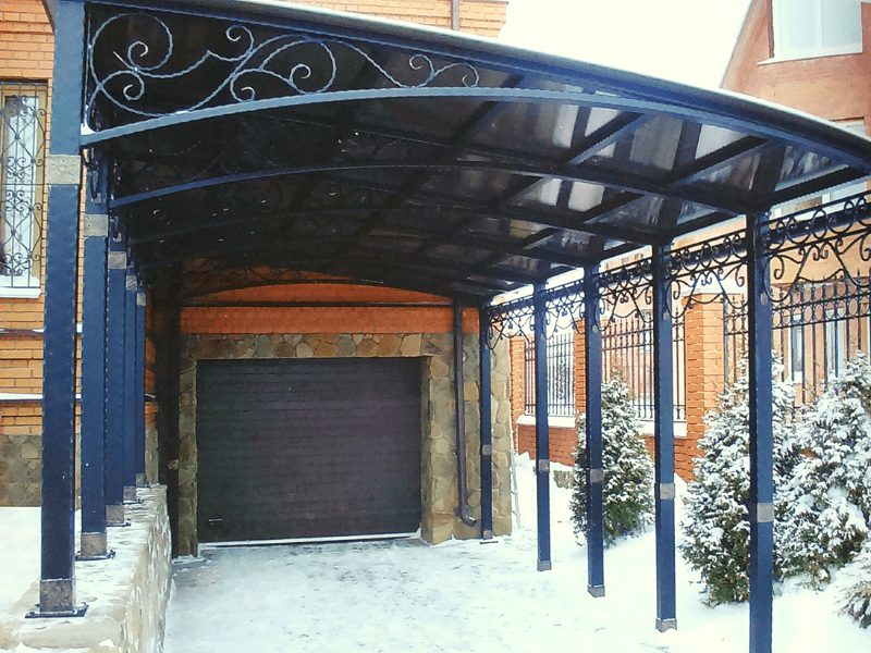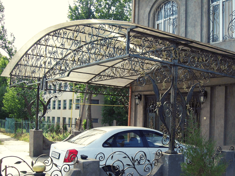 Кованый навес над крыльцом дома — это не просто красивый аксессуар, но и вынужденная необходимость, которая может спасти жизнь в ненастную погоду. Автонавес из поликарбоната защищает автомобиль от попадания солнечных лучей, которые нагревают машину, а так же укрывает от осадков в виде дождя и града. Это построение занимает значительную часть участка, поэтому каждому стоит обратить особое внимание на дизайнерское оформление тента.